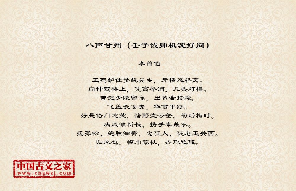 《八声甘州(壬子饯帅机沈好问)》的原文打印版(李曾伯)