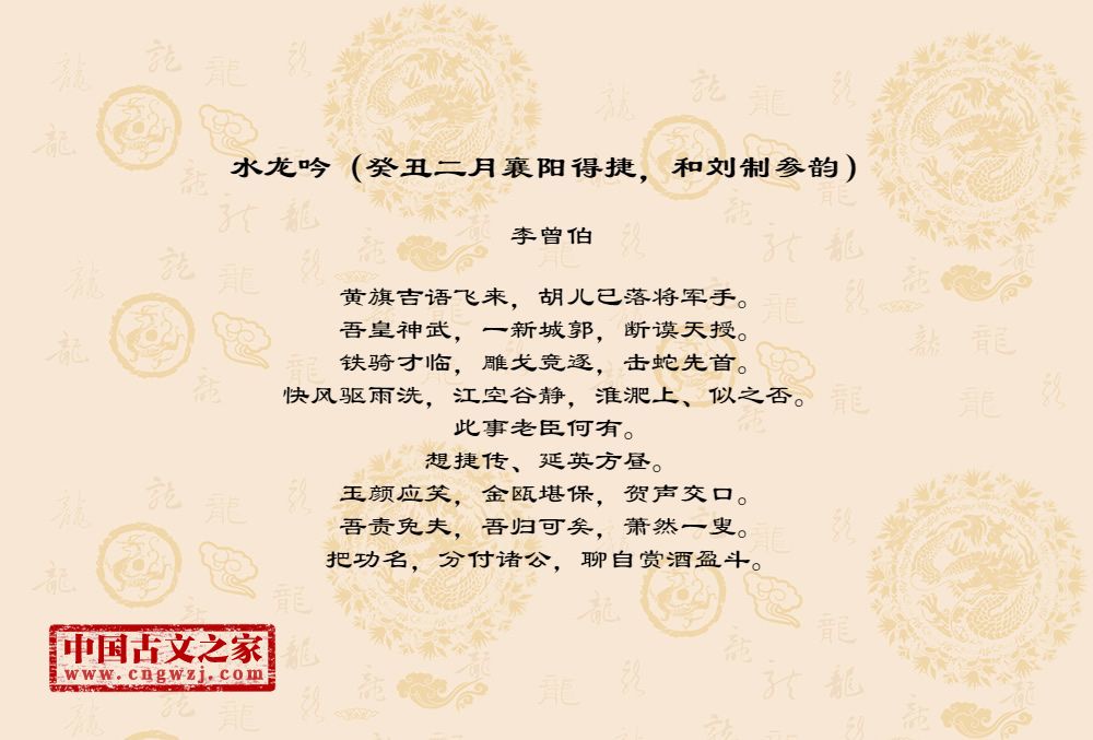《水龙吟(癸丑二月襄阳得捷,和刘制参韵)》的原文打印版(李曾伯)