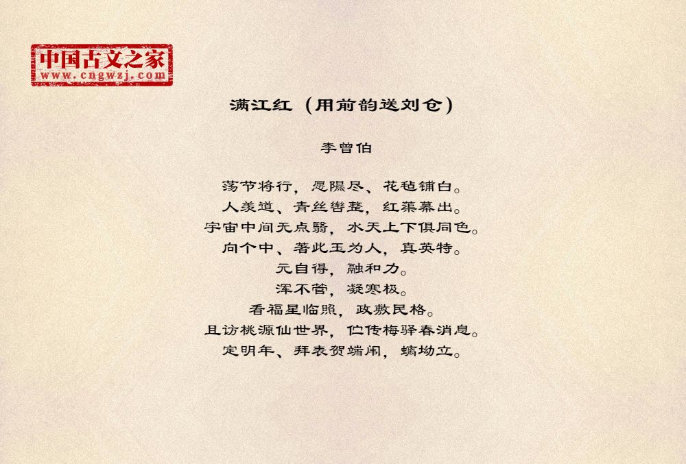 李曾伯(1198~1265至1275间)南宋词人。字长孺,号可斋。原籍覃怀(今河南沁阳附近)。南渡后寓居嘉兴(今属浙江)。