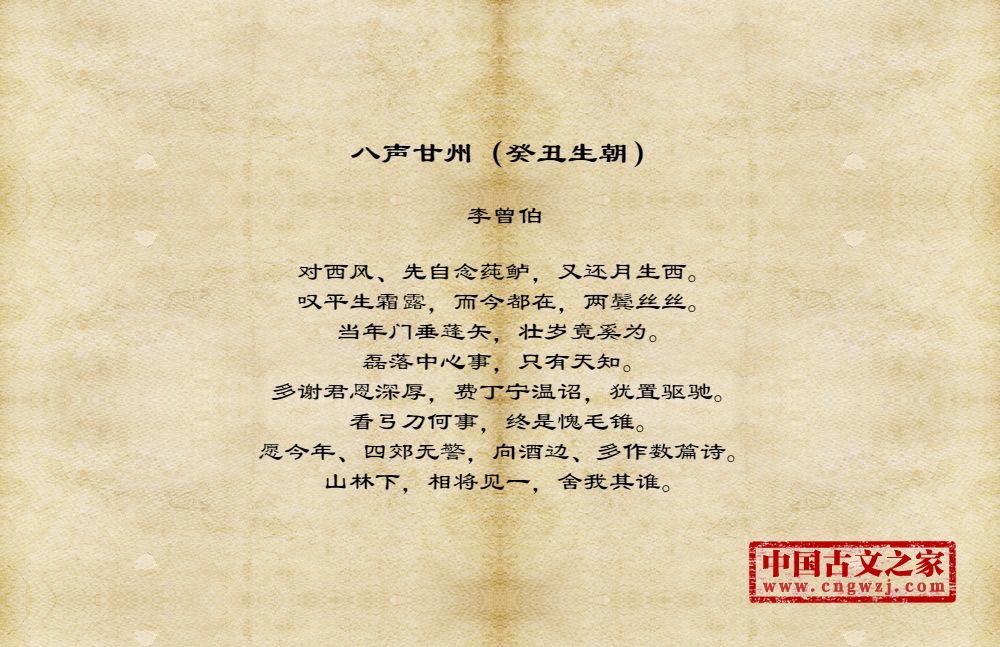 李曾伯(1198~1265至1275间)南宋词人。字长孺,号可斋。原籍覃怀(今河南沁阳附近)。南渡后寓居嘉兴(今属浙江)。