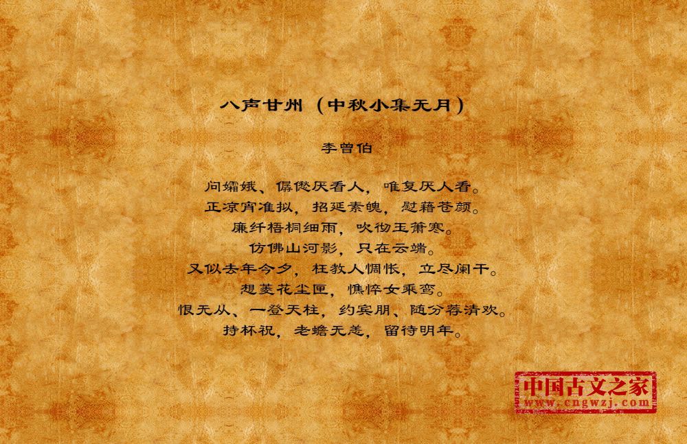 《八声甘州(中秋小集无月)》的原文打印版(李曾伯)
