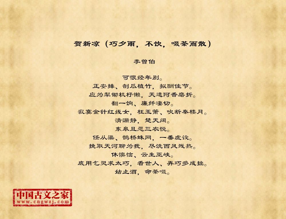 《贺新凉(巧夕雨,不饮,啜茶而散)》的原文打印版(李曾伯)