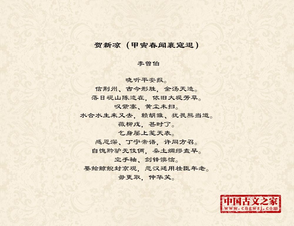 《贺新凉(甲寅春闻襄寇退)》的原文打印版(李曾伯)