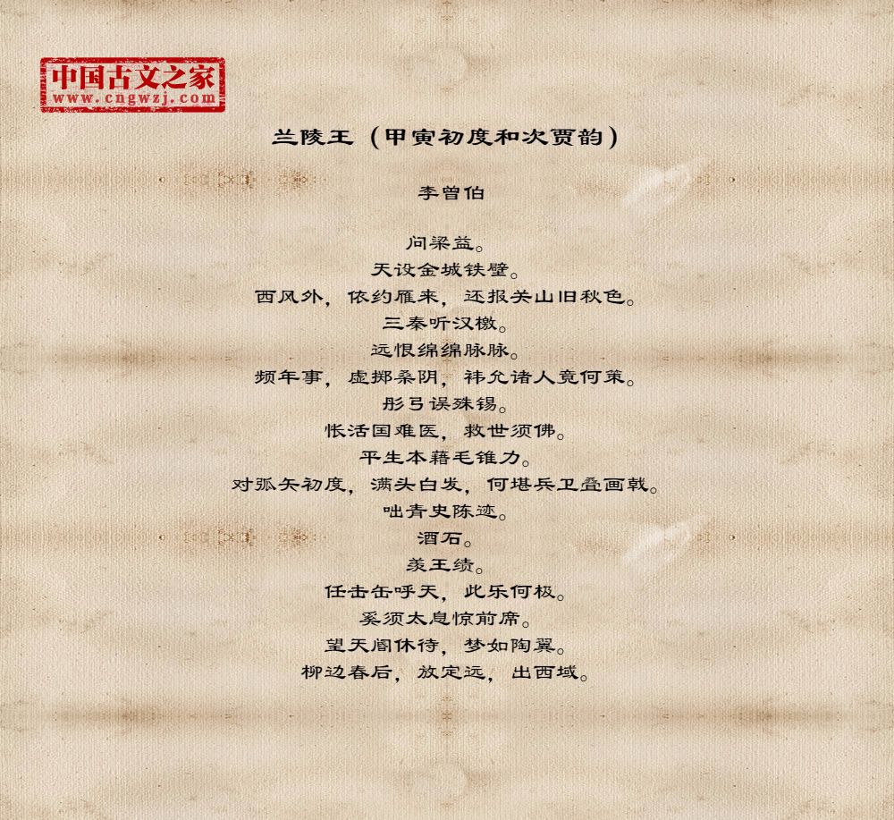 《兰陵王(甲寅初度和次贾韵)》的原文打印版(李曾伯)