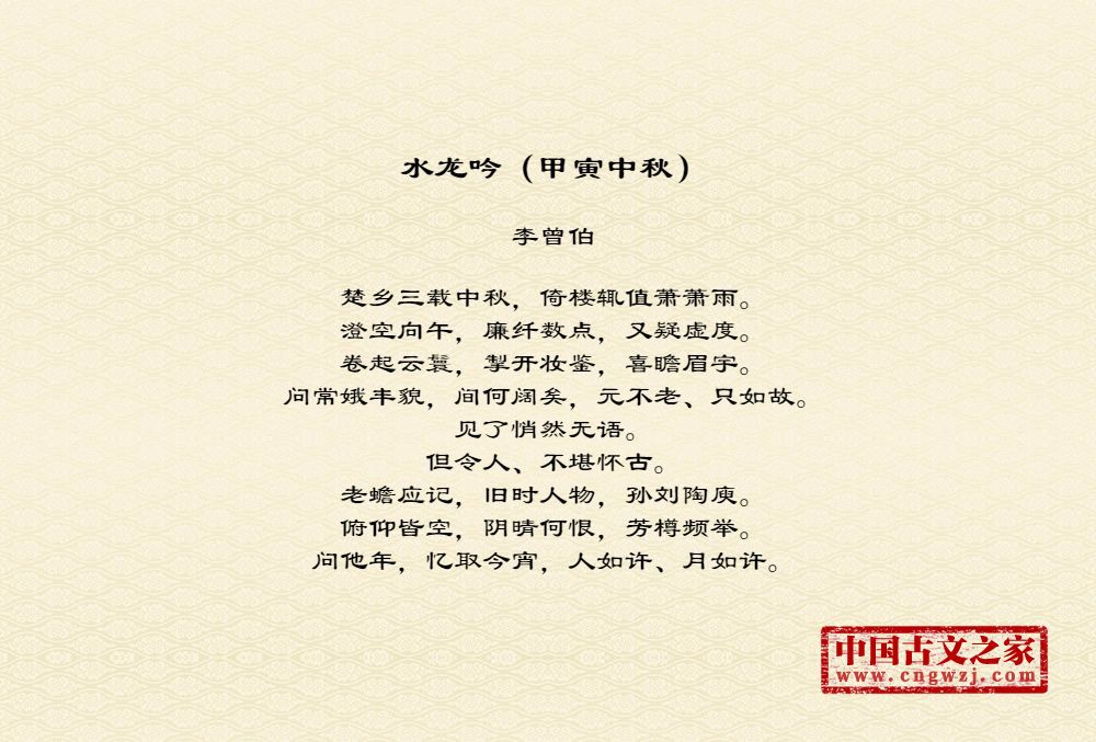 李曾伯(1198~1265至1275间)南宋词人。字长孺,号可斋。原籍覃怀(今河南沁阳附近)。南渡后寓居嘉兴(今属浙江)。