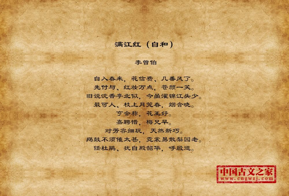 李曾伯(1198~1265至1275间)南宋词人。字长孺,号可斋。原籍覃怀(今河南沁阳附近)。南渡后寓居嘉兴(今属浙江)。