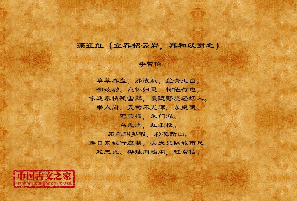 《满江红(立春招云岩,再和以谢之)》的原文打印版(李曾伯)