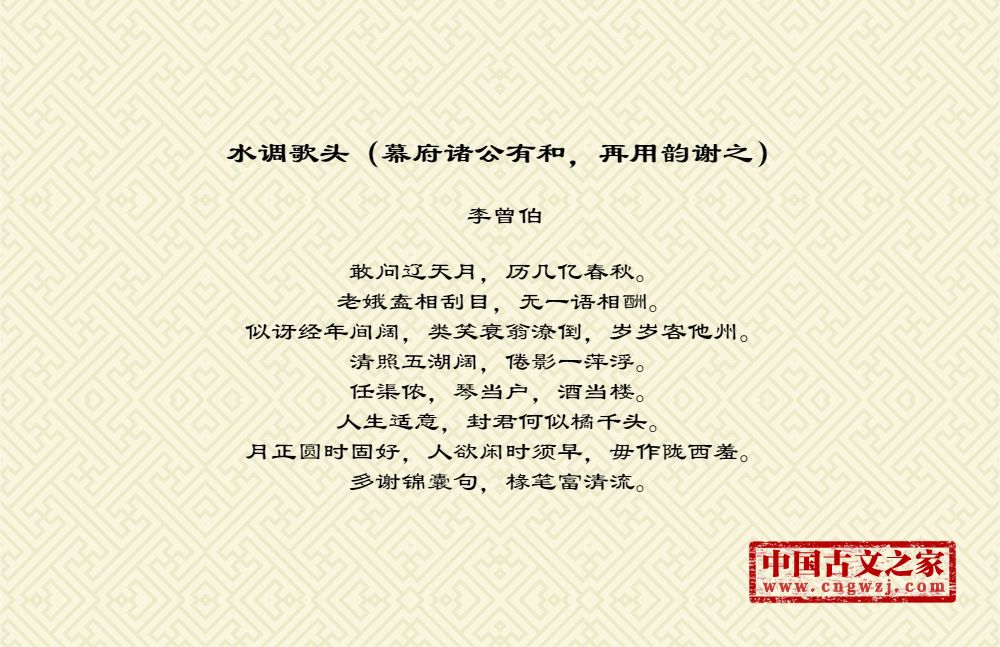 《水调歌头(幕府诸公有和,再用韵谢之)》的原文打印版(李曾伯)