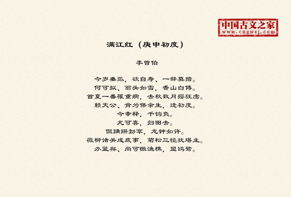 李曾伯(1198~1265至1275间)南宋词人。字长孺,号可斋。原籍覃怀(今河南沁阳附近)。南渡后寓居嘉兴(今属浙江)。