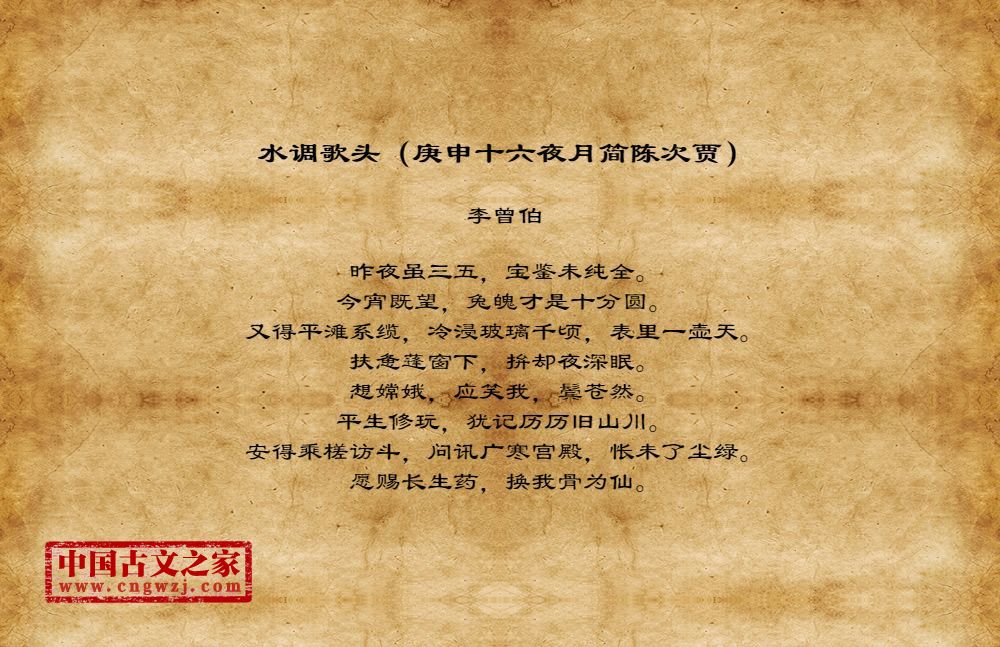 《水调歌头(庚申十六夜月简陈次贾)》的原文打印版(李曾伯)