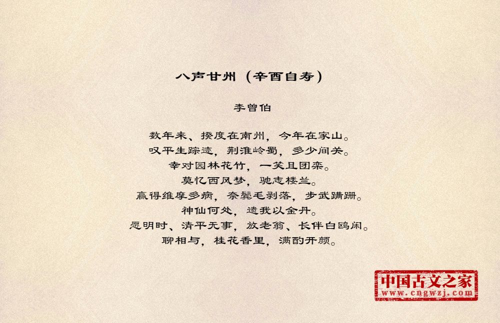 李曾伯(1198~1265至1275间)南宋词人。字长孺,号可斋。原籍覃怀(今河南沁阳附近)。南渡后寓居嘉兴(今属浙江)。