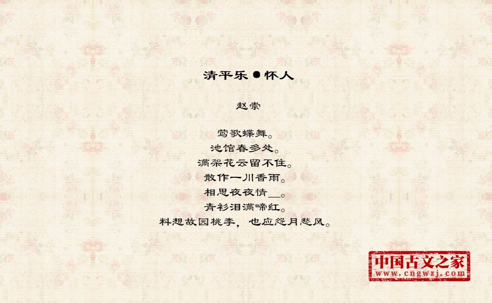 《清平乐·怀人》的原文打印版(赵崇)