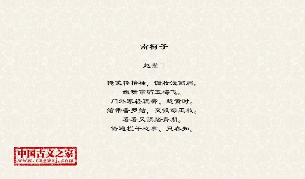《南柯子》的原文打印版(赵崇)