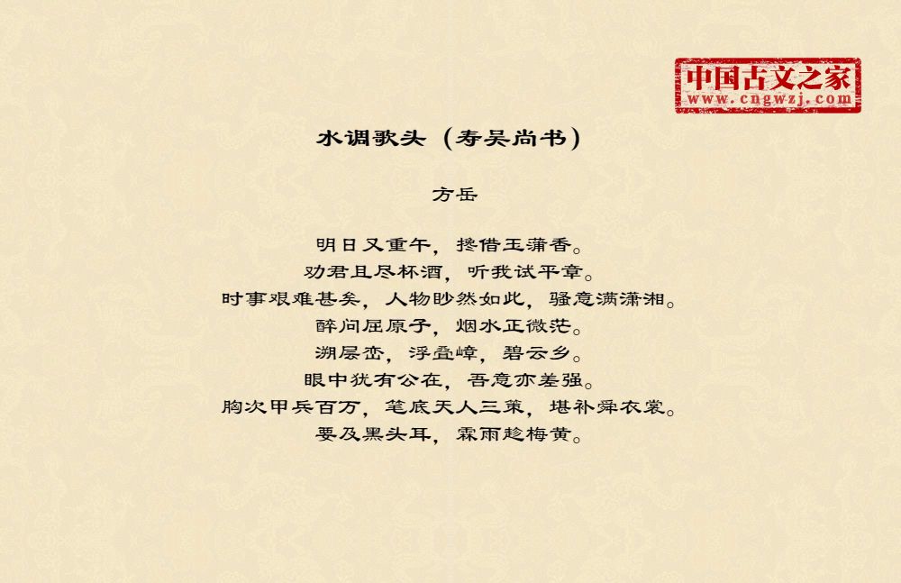 方岳(1199~1262),南宋诗人、词人。字巨山,号秋崖。祁门(今属安徽)人。绍定五年(1232)进士,授淮东安抚司□官。淳□中,以工部郎官充任赵葵