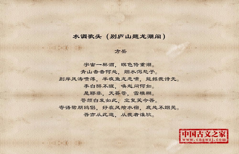 《水调歌头(别庐山题龙湖阁)》的原文打印版(方岳)