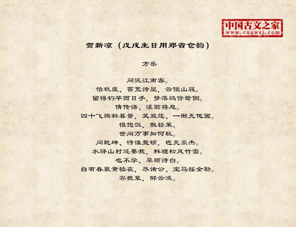 《贺新凉(戊戌生日用郑省仓韵)》的原文打印版(方岳)