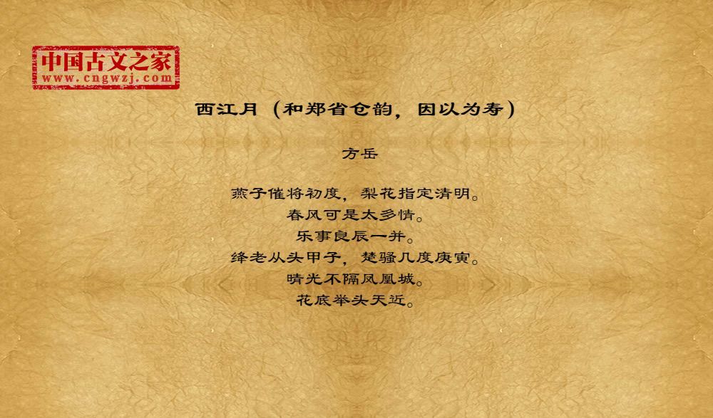 《西江月(和郑省仓韵,因以为寿)》的原文打印版(方岳)