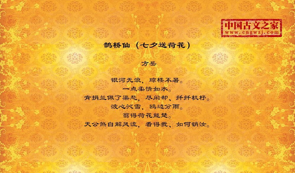 银河无浪,琼楼不暑。一点柔情如水。肯捐兰佩了渠愁,尽闲却、纤纤机杼。波心沁雪,鸥边分雨。翦得荷花能楚。天公煞自解风流,看得我、如何销汝。