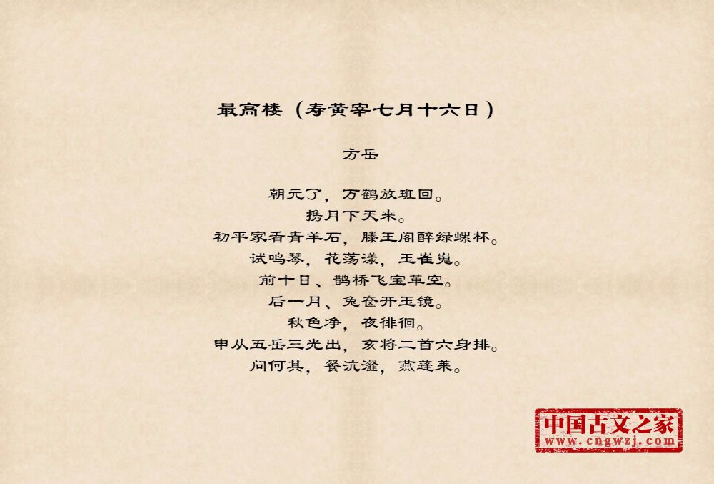 《最高楼(寿黄宰七月十六日)》由方岳创作