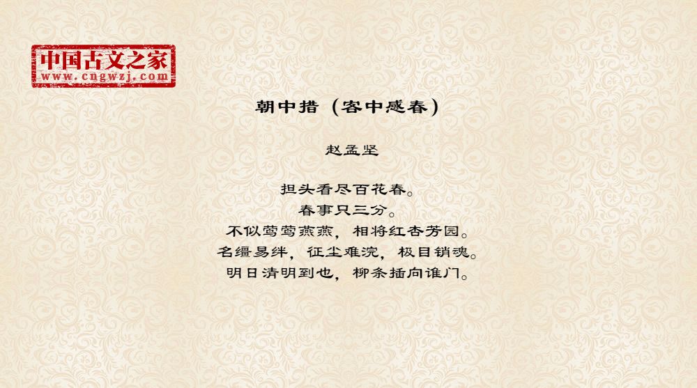 《朝中措(客中感春)》的原文打印版(赵孟坚)