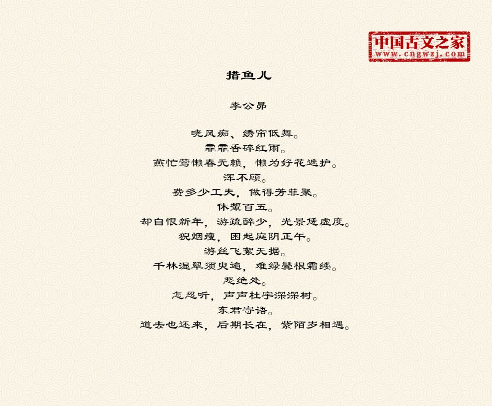 晓风痴、绣帘低舞。霏霏香碎红雨。燕忙莺懒春无赖,懒为好花遮护。浑不顾。费多少工夫,做得芳菲聚。休颦百五。却自恨新年,游疏醉少,光景恁虚度。猊烟瘦,困起庭阴正午。游丝飞絮无据。千林湿翠须臾遍,难绿鬓根霜缕。愁绝处。怎忍听,声声杜宇深深树。东君寄语。道去也还来,后期长在,紫陌岁相遇。
