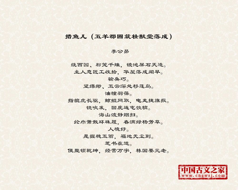 《措鱼儿(五羊郡圃筑壮猷堂落成)》的原文打印版(李公昴)