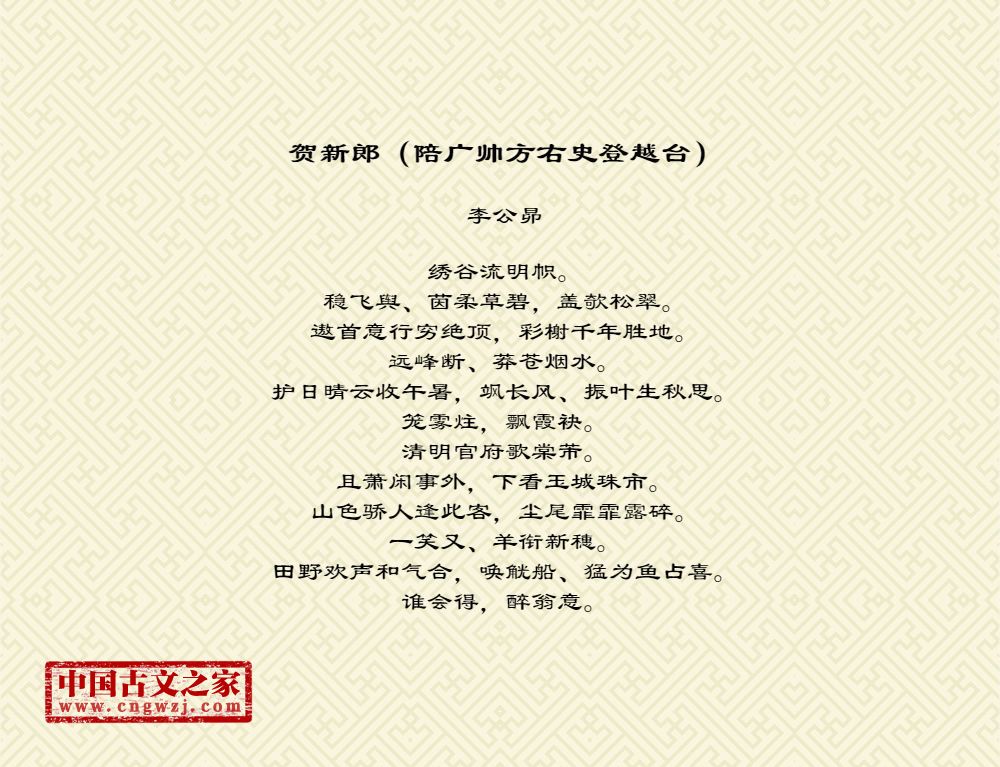 《贺新郎(陪广帅方右史登越台)》由李公昴创作