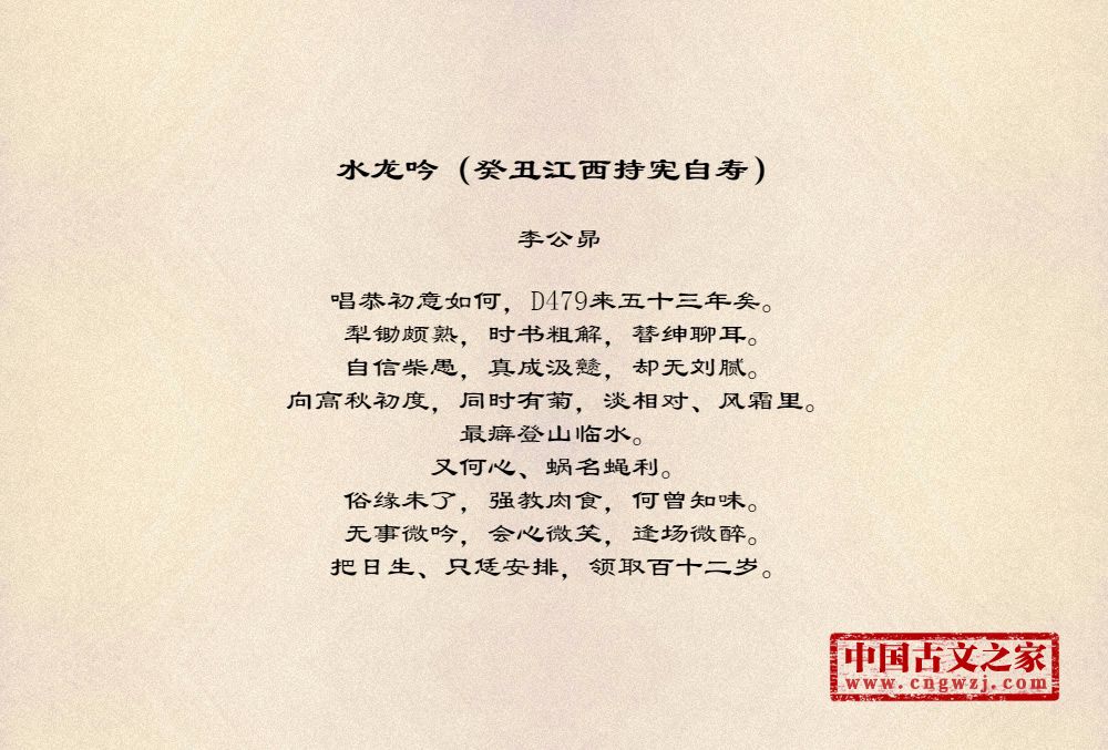 《水龙吟(癸丑江西持宪自寿)》由李公昴创作