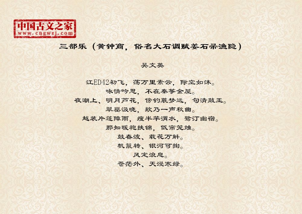 《三部乐(黄钟商,俗名大石调赋姜石帚渔隐)》的原文打印版(吴文英)