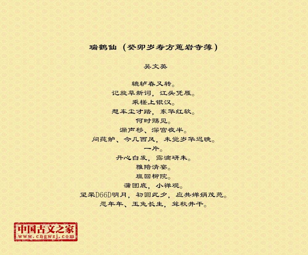 《瑞鹤仙(癸卯岁寿方蕙岩寺簿)》的原文打印版(吴文英)