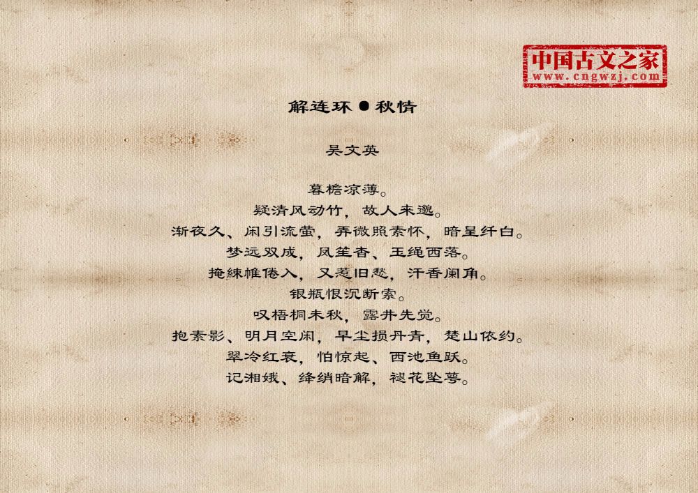 吴文英(约1200~1260),字君特,号梦窗,晚年又号觉翁,四明(今浙江宁波)人。原出翁姓,后出嗣吴氏。与贾似道友善。有《梦窗词集》一部,存词三百四