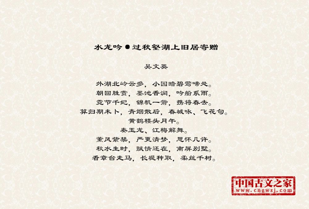 《水龙吟·过秋壑湖上旧居寄赠》的原文打印版(吴文英)