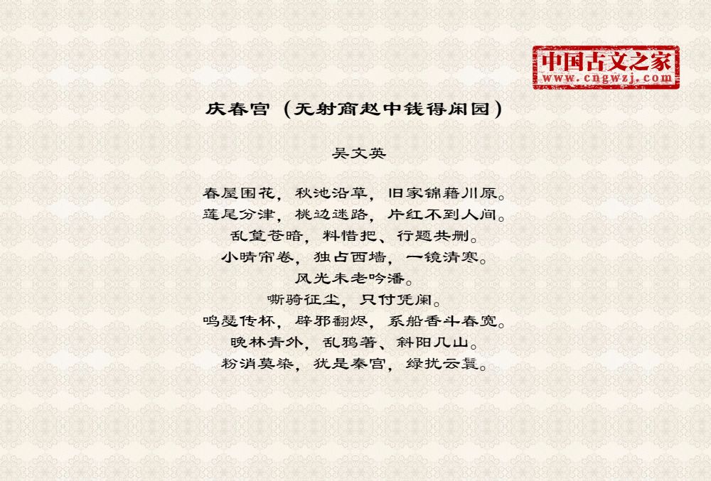 庆春宫(无射商赵中钱得闲园)