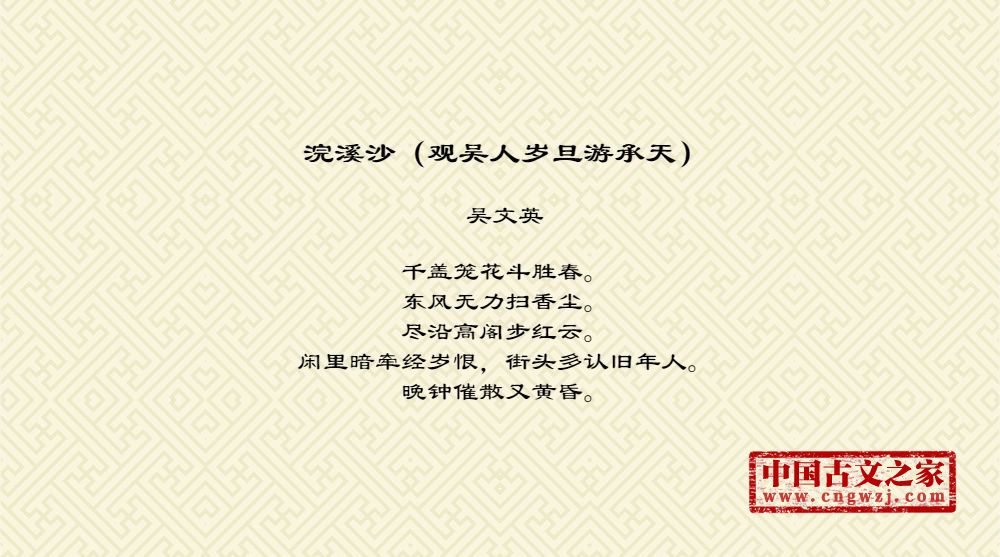 《浣溪沙(观吴人岁旦游承天)》的原文打印版(吴文英)