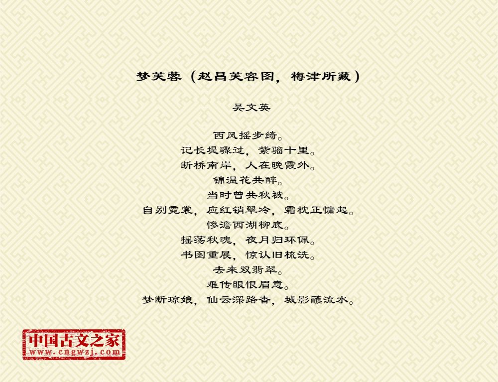 《梦芙蓉(赵昌芙容图,梅津所藏)》的原文打印版(吴文英)