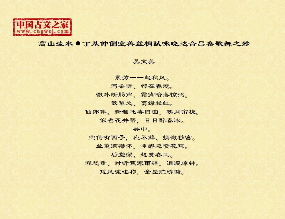 高山流水·丁基仲侧室善丝桐赋咏晓达音吕备歌舞之妙