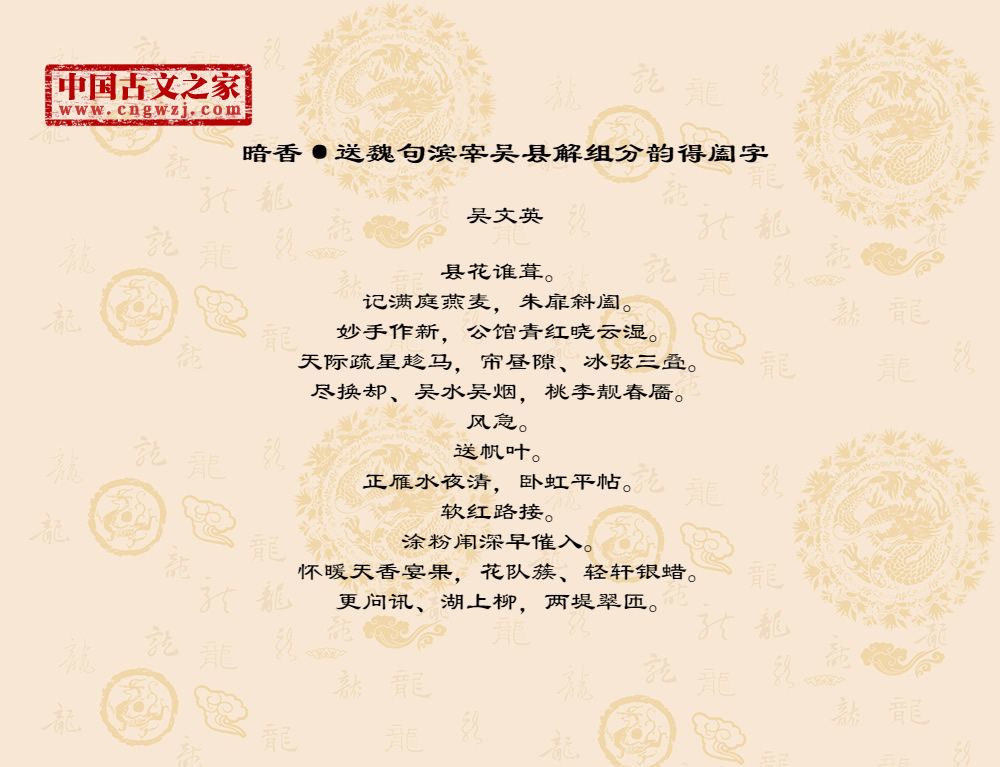 《暗香·送魏句滨宰吴县解组分韵得阖字》的原文打印版(吴文英)