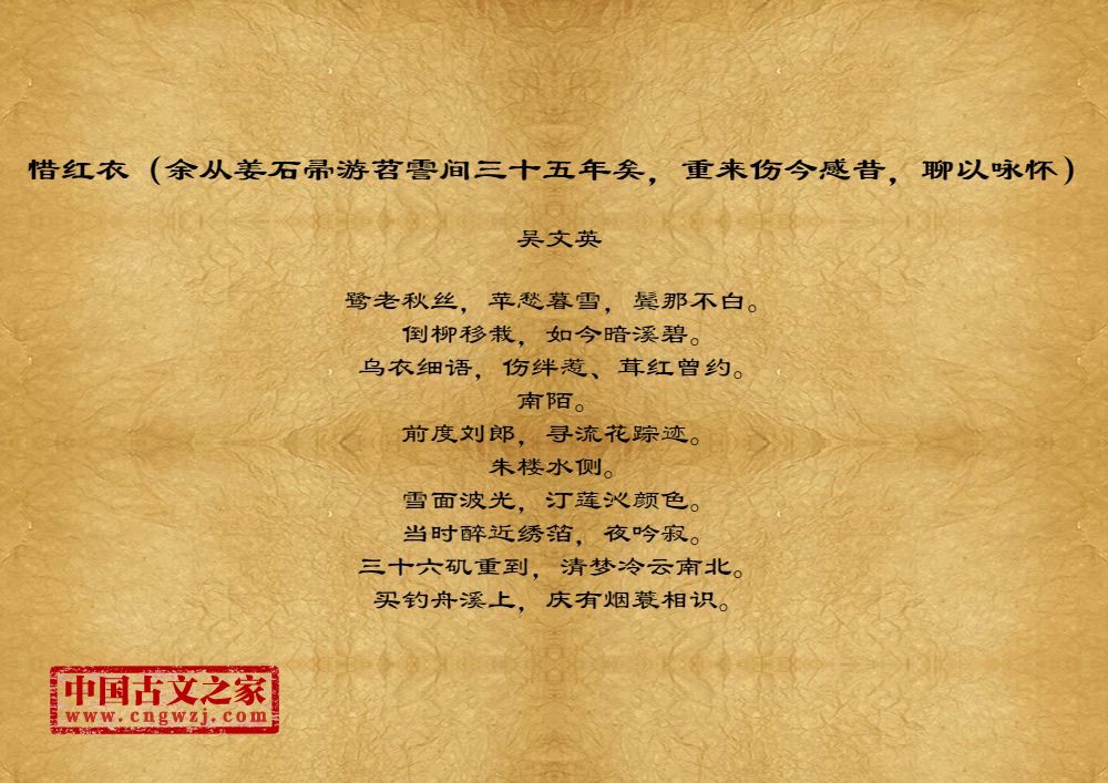 惜红衣(余从姜石帚游苕霅间三十五年矣,重来伤今感昔,聊以咏怀)