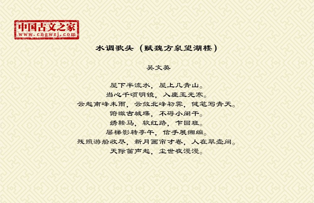 《水调歌头(赋魏方泉望湖楼)》的原文打印版(吴文英)