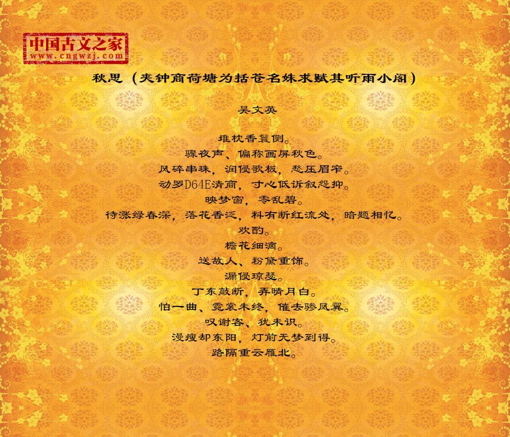 《秋思(夹钟商荷塘为括苍名姝求赋其听雨小阁)》由吴文英创作