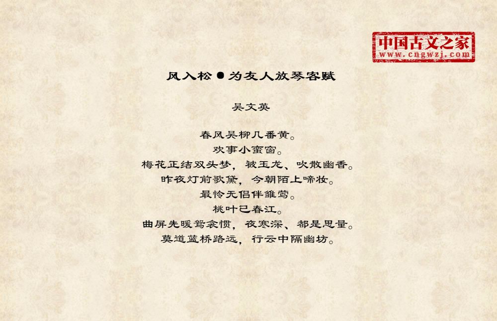 春风吴柳几番黄。欢事小蛮窗。梅花正结双头梦,被玉龙、吹散幽香。昨夜灯前歌黛,今朝陌上啼妆。最怜无侣伴雏莺。桃叶已春江。曲屏先暖鸳衾惯,夜寒深、都是思量。莫道蓝桥路远,行云中隔幽坊。
