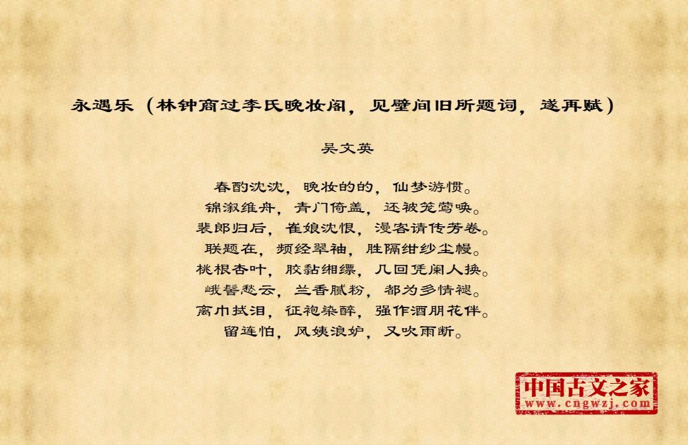 永遇乐(林钟商过李氏晚妆阁,见壁间旧所题词,遂再赋)图片