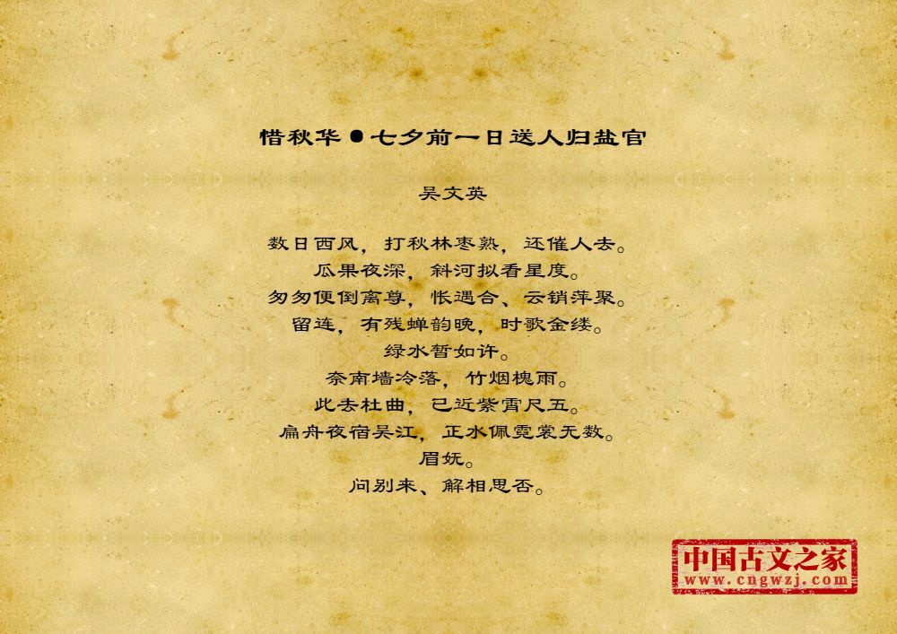 《惜秋华·七夕前一日送人归盐官》的原文打印版(吴文英)