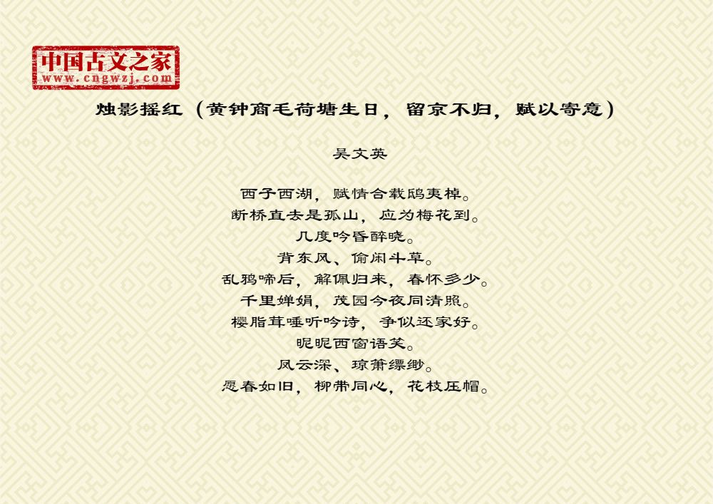 烛影摇红(黄钟商毛荷塘生日,留京不归,赋以寄意)图片