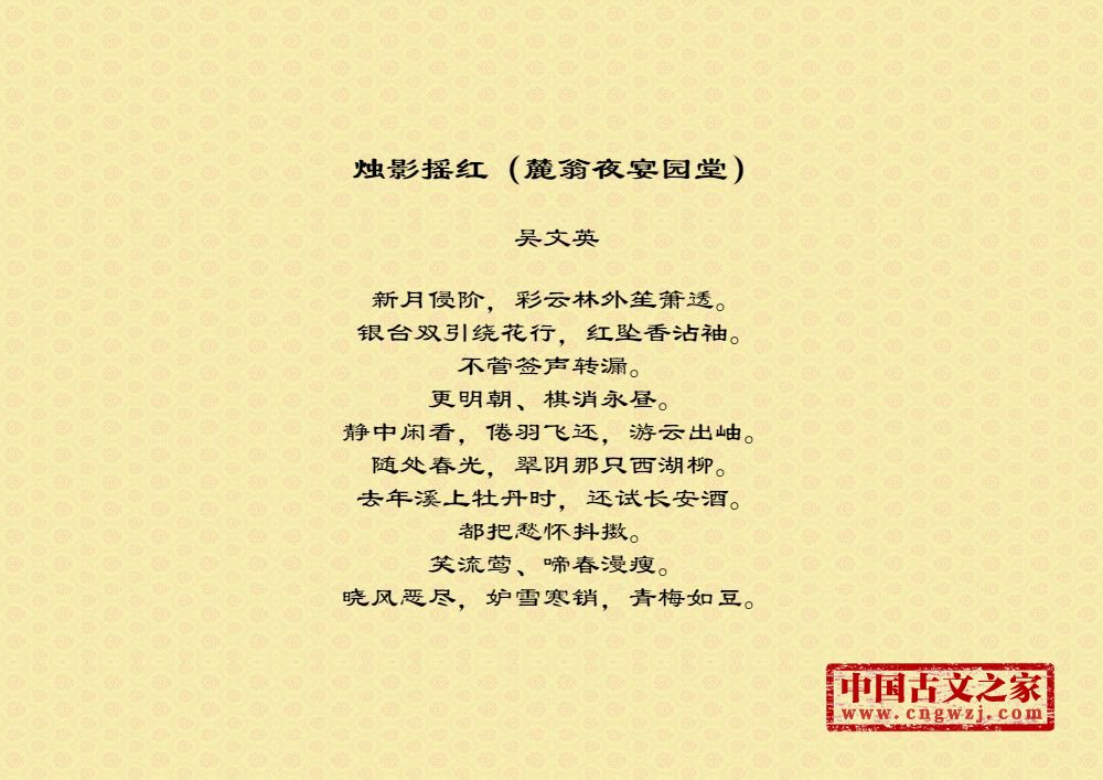 《烛影摇红(麓翁夜宴园堂)》由吴文英创作