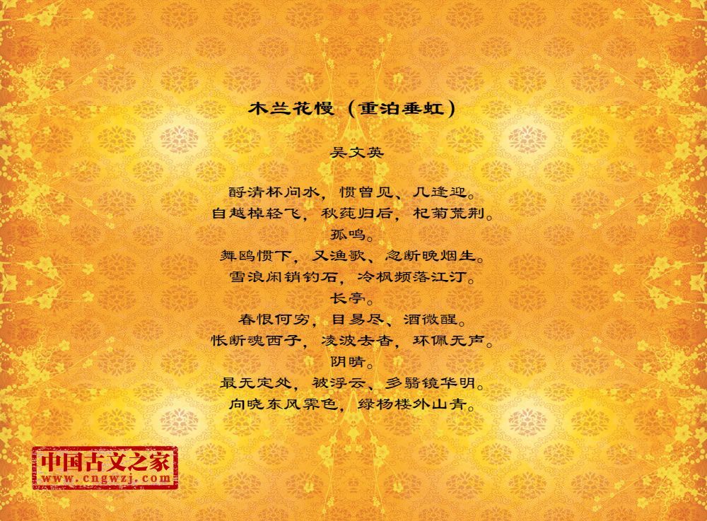 吴文英(约1200~1260),字君特,号梦窗,晚年又号觉翁,四明(今浙江宁波)人。原出翁姓,后出嗣吴氏。与贾似道友善。有《梦窗词集》一部,存词三百四