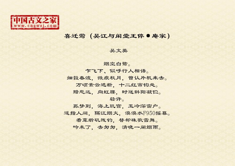 《喜迁莺(吴江与闲堂王倅·庵家)》的原文打印版(吴文英)