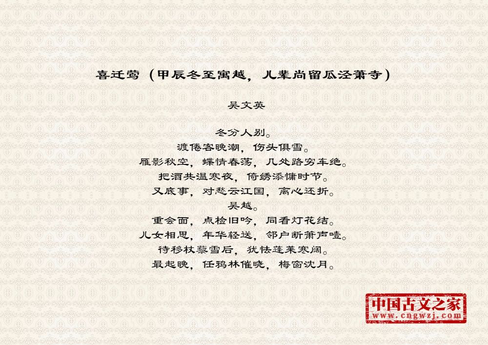 《喜迁莺(甲辰冬至寓越,儿辈尚留瓜泾萧寺)》的原文打印版(吴文英)