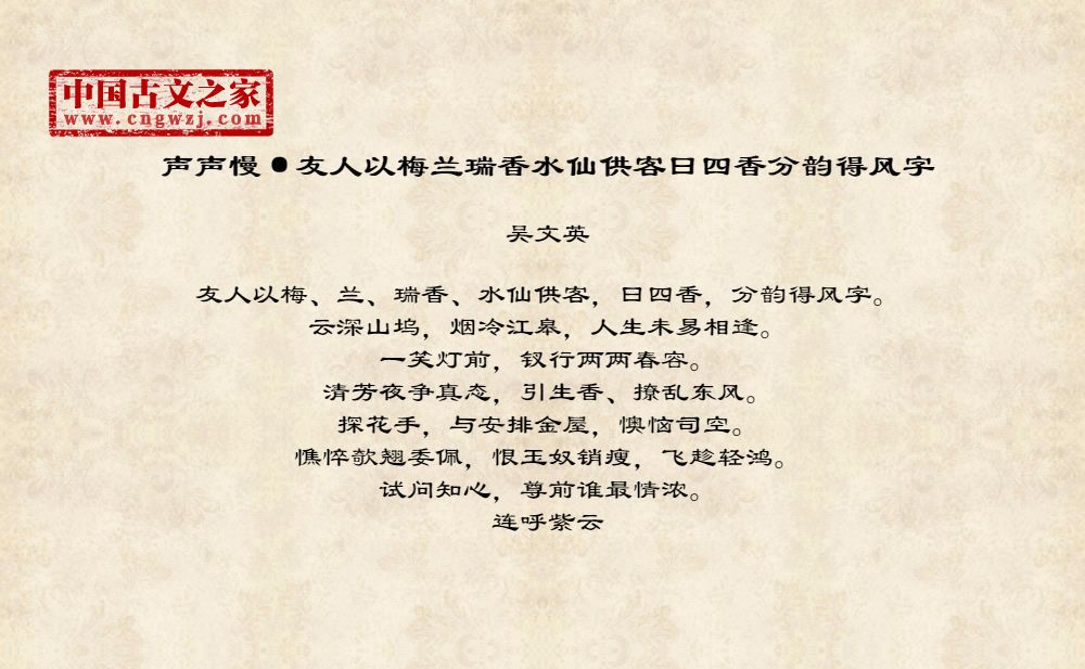 声声慢·友人以梅兰瑞香水仙供客曰四香分韵得风字图片
