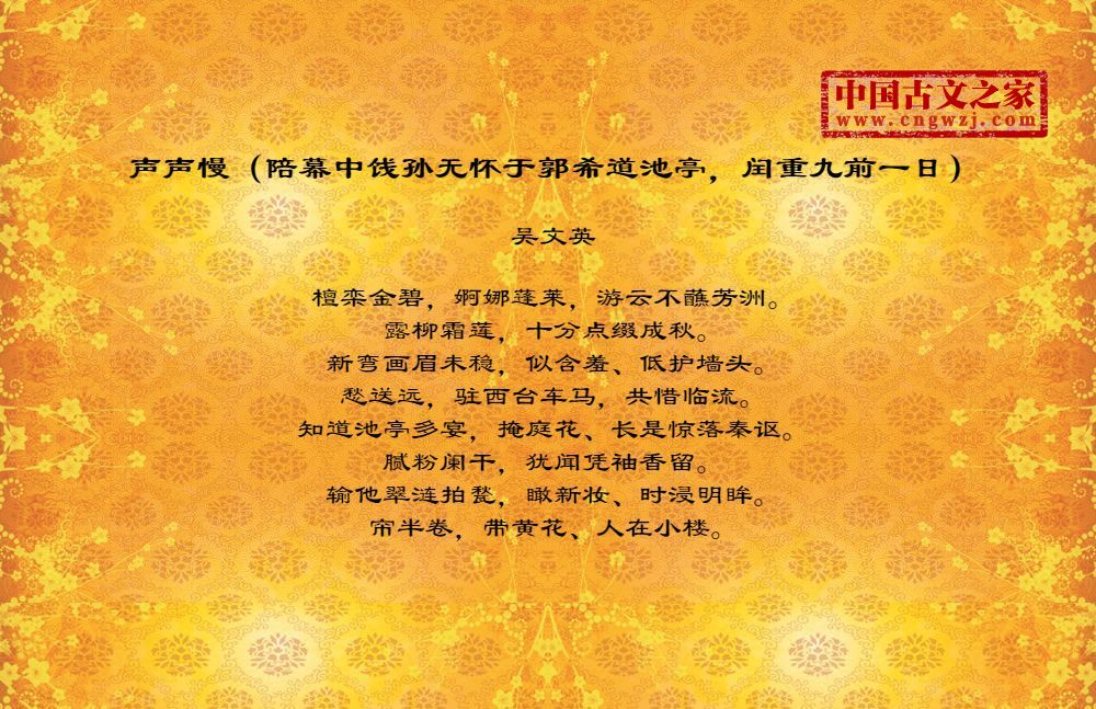 声声慢(陪幕中饯孙无怀于郭希道池亭,闰重九前一日)图片